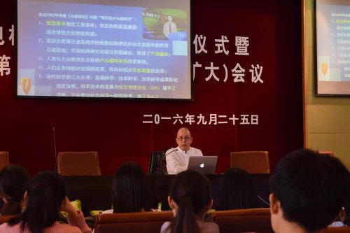讲座开始,程教授侧重当前社会走向,引导同学们作为老员工应当如何选择正确的走向。其后话锋一转,谈论至中国现代设计的启蒙,详细地介绍工业设计的起源与发展,慢慢延伸至工业设计转型为现代设计。