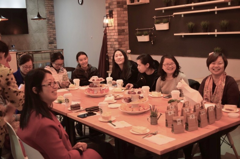 在咖啡与甜点的伴随下陈店长为教师们介绍制作咖啡所需要的工具,并现场为教师们制作咖啡。女教师们都十分认真地观察着制作咖啡的过程,与平时工作中不太一样的氛围让女教师们充满了乐趣与好奇,不但向店长提出了自己的疑问,也纷纷动手尝试着制作咖啡。陈店长更是细心、耐心地向老师分步详细讲解,并辅助各位老师完成了咖啡的制作。