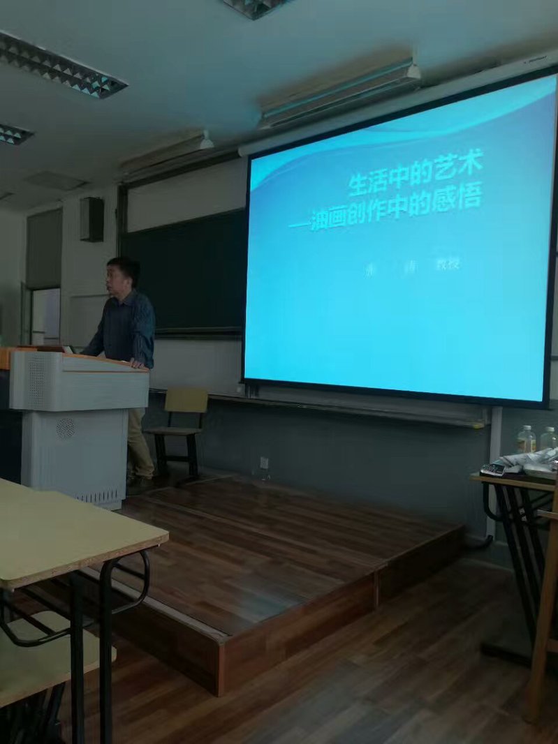 上午,张涛教授以《生活中的艺术--油画创作中的感悟》为主题,带大家一同欣赏了多位油画大师的作品,且分享自己在油画创作中的感悟。就风景写生而言,他从选景视角、构图、色彩等油画风景写生的方法进行了详细讲解,大家受益匪浅。