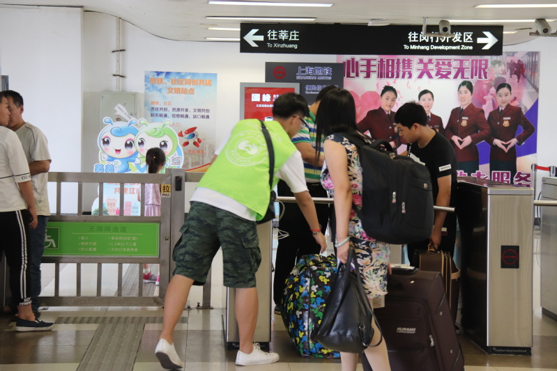早上7:30,志愿者们就已经到岗,准备迎接新一届的莘莘学子,从地铁站到校史馆处处有他们的身影。