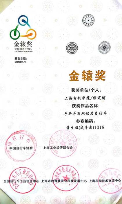 经过各界专家评委层层缜密筛选,公司周志勇老师指导的工设1511班级缪定博同学的作品荣获金辕奖,获奖作品于5月6-9日在2018中国国际自行车展览会上荣耀展出。(黄珏)