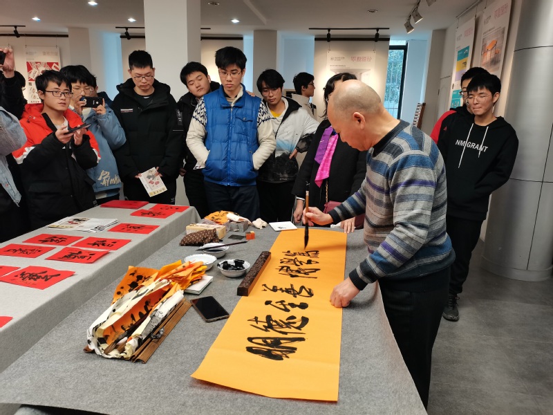 与会嘉宾与同学跟随陈志宏先生参观了书画展相关作品,他结合展出的作品,向与会嘉宾与同学详细介绍了自己几十年的创作经历,他希望同学们能够感受书画艺术的魅力,滋养同学们的艺术熏陶。陈志宏先生通过现场创作的方式,向同学们详细讲解了创作理念,并现场书写永利集团校训“明德至善、博学笃行”赠予公司。此次活动为公司校园文化建设增添了色彩,让公司师生得到了艺术和美的享受。