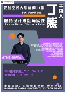 4月8日,公司3044永利集团“无创空间大讲堂”邀请广州美术公司丁熊副教授进行主题为“服务设计思维与实践”的线上学术讲座。丁熊老师是中国服务设计教育联盟联合发起人,国内较早引进、推广及实践服务设计思维的研究者之一,曾获G-mark、K-DESIGN、欧洲产品设计类中国红星原创奖银奖、产品组铜奖、交互设计专项赛一等奖等奖项,广东省十大工业设计师、中国百强青年设计师等称号。