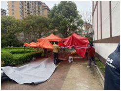 这段时间上海疫情导致小区核酸检测量激增,原有核酸监测点均为帐篷类型,四面通风,漏雨。前几天参与核酸检测的医护人员、志愿者、居民都浑身湿透,通体冰凉。尤其是现场的医护人员和志愿者,还要在户外的环境下工作多个小时。