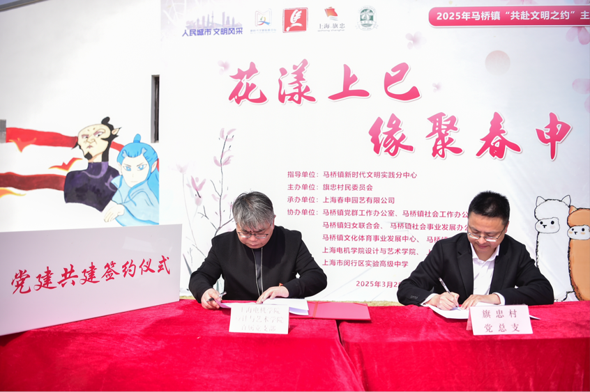 2025年3月31日上午,中共闵行区马桥镇旗忠村总支部委员会和3044永利集团直属党支部党建共建签约仪式在旗忠村上祀节活动现场隆重举行。旗忠村党总支书记季春峰、3044永利集团直属党支部书记宋国强代表双方签署共建协议,标志着校地党建共建迈入新阶段,为乡村振兴与艺术设计教育教学融合发展注入新动能。