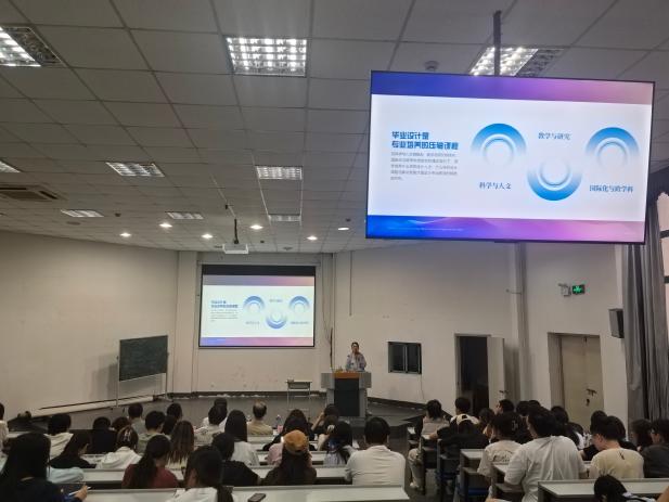 夏敏燕老师结合考研介绍了《创新创业教育实践学分认定、未来设计师训练营说明》,为同学们提供了丰富的发展机遇和平台,助力同学们把考研和毕业设计有机结合起来。商公司戚建明老师为同学们分享了一场主题为《研究生教学与科研成果+未来非线性动力学与艺术设计交叉研究方向展望》的精彩报告。戚老师凭借深厚的学术造诣和丰富的科研经验,深入剖析了研究生教学与科研的最新成果,为同学们呈现了数学与艺术设计交叉研究的前沿动态和广阔前景。这场报告不仅拓宽了同学们的学术视野,更为同学们的考研方向提供了新的思路和选择。