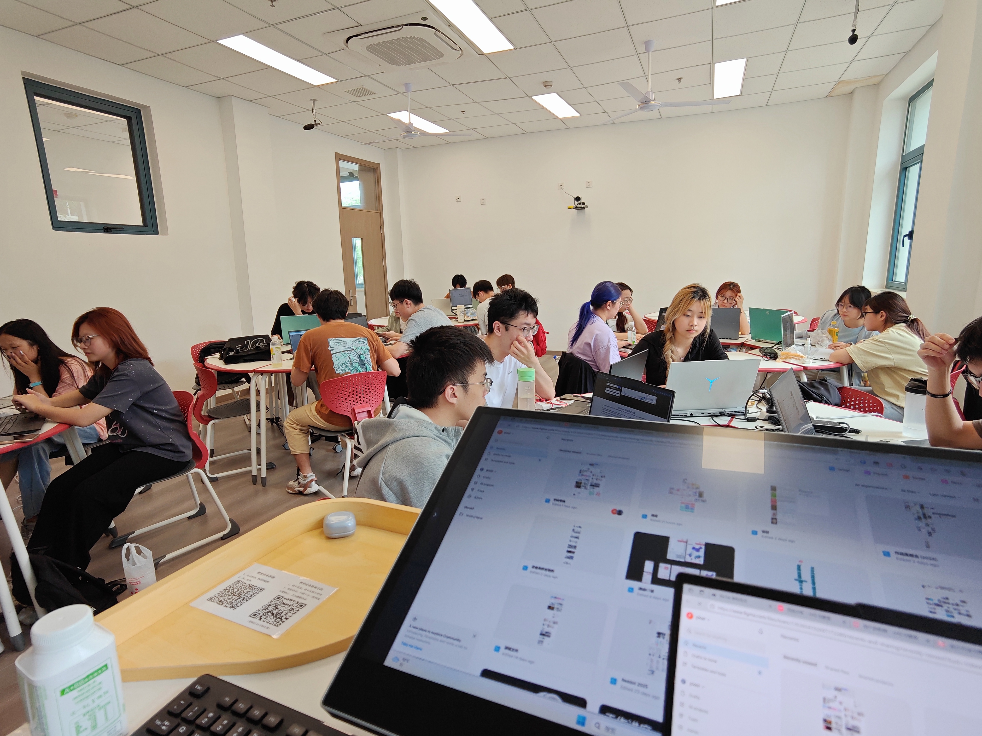 在为期一周的学习中,陈书鸿老师以深入浅出的讲解,拉开了此次workshop的序幕。企业教师详细剖析了设计乙方和甲方公司的区别,从运营模式、工作侧重点到目标诉求等方面进行了全方位解读,让同学们对行业内不同角色有了清晰认知。深入讲解了设计公司的产品方案进行流程,还特别推荐了《设计方法与策略:代尔夫特设计指南》一书,书中丰富多样的调研方法,为同学们打开了设计思维的新大门。课程聚焦实践技能提升推荐设计软件figma,并进行了细致的实操教学。从软件基础操作到实用功能演示,同学们紧跟老师节奏,认真练习,为即将到来的暑期实习筑牢技能基础。